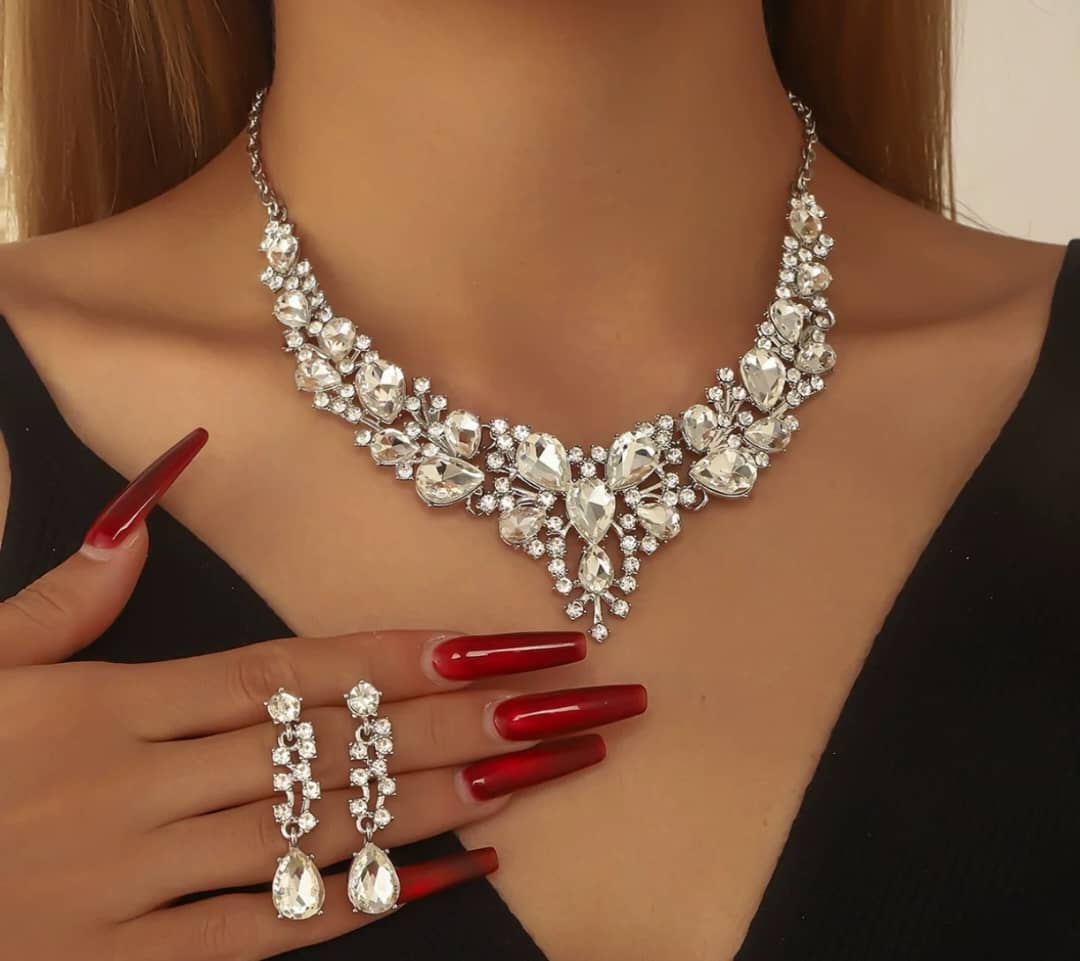 Adorn yourself with the Empress Elegance Set, where sparkling crystals create a regal statement fit for Nigerian royalty. This exquisite necklace and matching earrings blend timeless sophistication with bold brilliance, perfect for celebrations and special occasions. Experience unmatched quality and mesmerizing allure that honors your elegance and cultural pride.