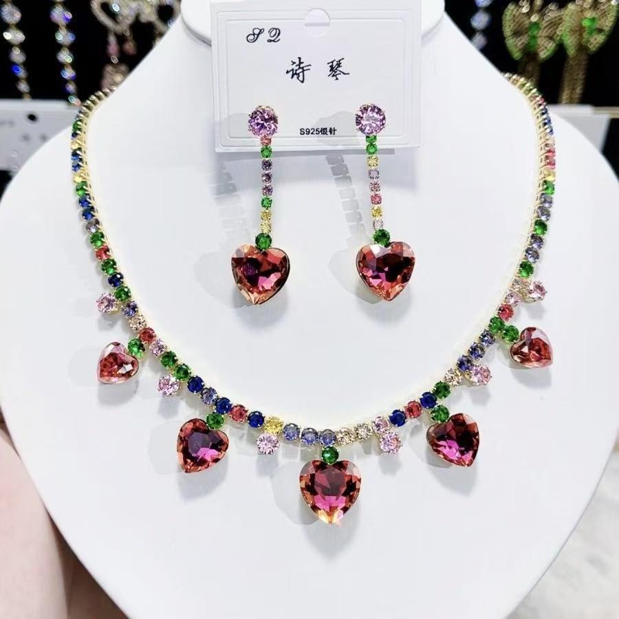 Vibrant heart-shaped gems with multicolor stones, perfect for elegant occasions.